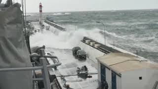 "Al salir a cubierta para confirmar la novedad informada por Ramírez, pude apreciar que la situación había cambiado radicalmente. El viento estaba soplando desde el Norte, con unos 20 nudos o más. Las olas estaban comenzando a pasar por sobre la punta del molo y el buque, con 2 espías menos, se restregaba contra los neumáticos de la gran minería que se usaban para amortiguar los golpes..."